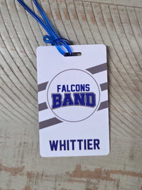 Add a personal touch to your band gear or instrument with our custom bag tags, perfect for individual members or entire bands. Crafted with durable, high-quality materials, these tags feature your name and team name or mascot for a unique and professional look. Whether you're looking to identify your gear at the field or simply show team spirit, these personalized tags are designed to withstand the wear and tear of the season. Lightweight and easy to attach, they come with a sturdy strap for secure placement on any bag or equipment. Make your gear stand out with a bag tag that’s as unique as your team.