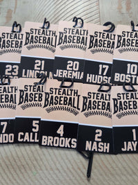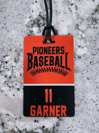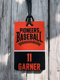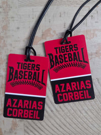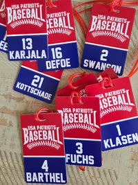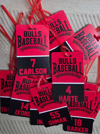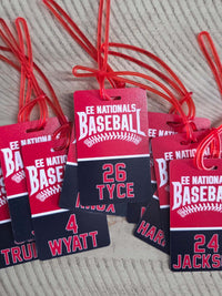 Add a personal touch to your baseball gear with our custom bag tags, perfect for individual players or entire teams. Crafted with durable, high-quality materials, these tags feature your player’s name and number for a unique and professional look. Whether you're looking to identify your bag at the field or simply show team spirit, these personalized tags are designed to withstand the wear and tear of the season. Lightweight and easy to attach, they come with a sturdy strap for secure placement on any bag or equipment. Make your gear stand out with a bag tag that’s as unique as your team.
