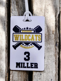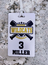 Add a personal touch to your baseball gear with our custom bag tags, perfect for individual players or entire teams. Crafted with durable, high-quality materials, these tags feature your player’s name and number for a unique and professional look. Whether you're looking to identify your bag at the field or simply show team spirit, these personalized tags are designed to withstand the wear and tear of the season. Lightweight and easy to attach, they come with a sturdy strap for secure placement on any bag or equipment. Make your gear stand out with a bag tag that’s as unique as your team.