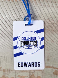 Add a personal touch to your gymnastics gear with our custom bag tags, perfect for individual athletes or entire teams. Crafted with durable, high-quality materials, these tags feature your name and team name or mascot for a unique and professional look. Whether you're looking to identify your bag at the gym or simply show team spirit, these personalized tags are designed to withstand the wear and tear of the season. Lightweight and easy to attach, they come with a sturdy strap for secure placement on any bag or equipment. Make your gear stand out with a bag tag that’s as unique as your team.